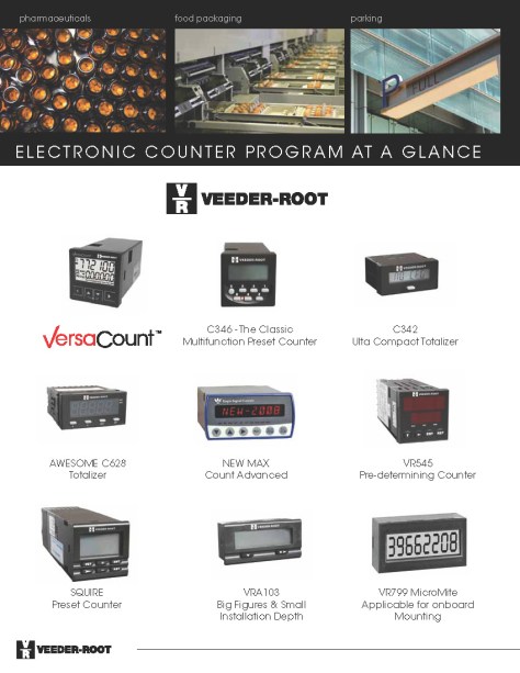 Multi-Function Indicators / Controllers: Multi-function indicators / controllers are combinations of totalizer, predetermining, counter, and rate measurement techniques. They often do the job of several instruments, saving time, money, and panel space, while reducing installation complexity. Ideal for applications that require multi-step sequential operations like count/time. Key Veeder-Root™ Advantages: Production Record Shifts / Orders Automation (e.g. Elimination Of Human Factor) Scrap Reduction and Production Defect Monitoring Determine Yield Converting Insure Correct Quantity – Package Contents Veeder-Root Literature …